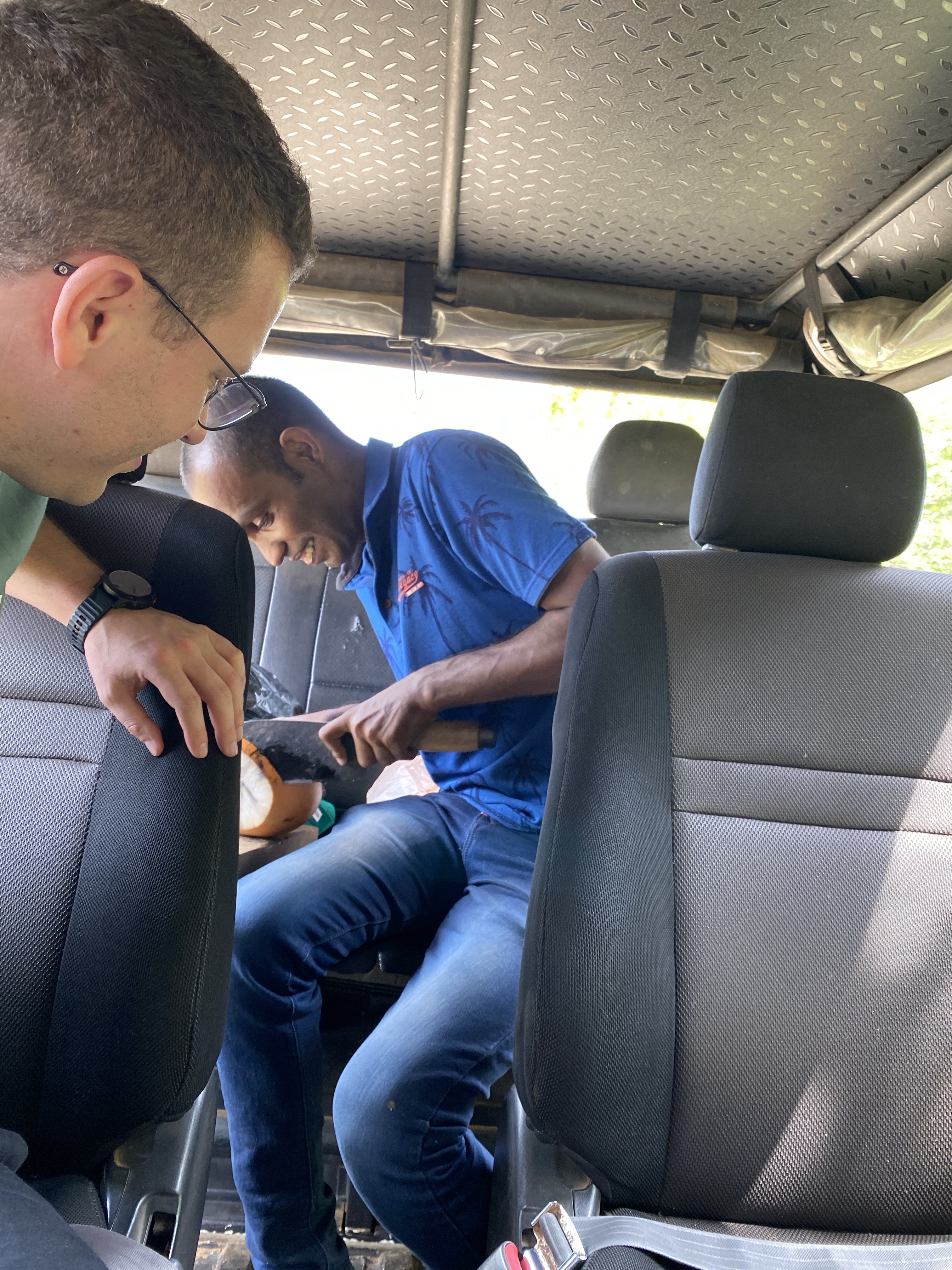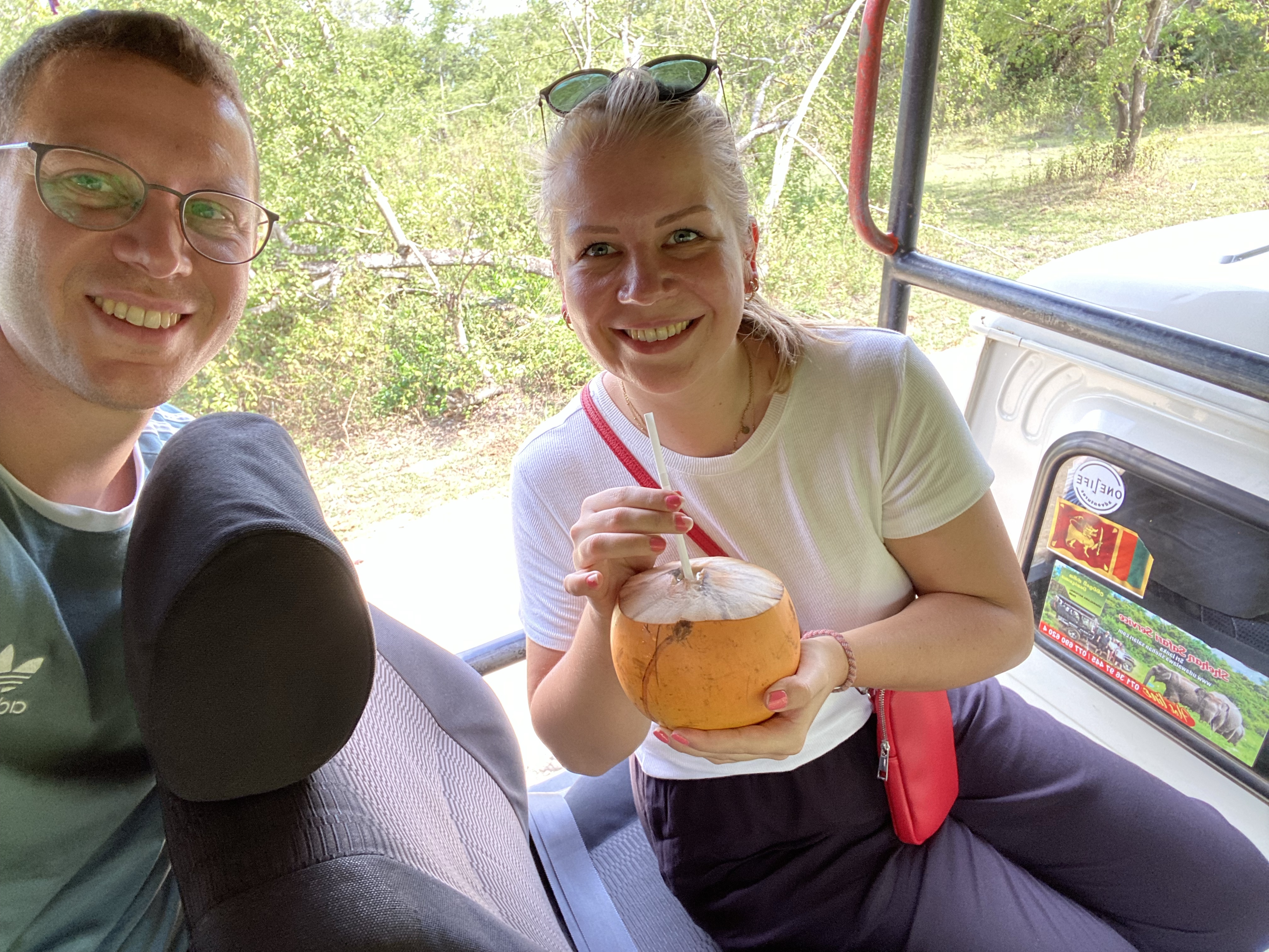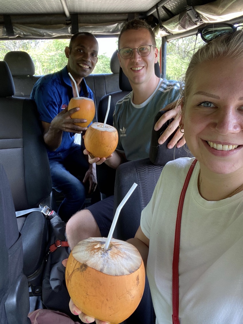 Am 26. Februar wurden wir dann per TukTuk abgeholt und sind ca. 150km von Ella über den Nationalpark bis nach Tangalle gefahren. Die ganze Tour hat insgesamt 7-8 Stunden gedauert und unser TukTuk Fahrer war dermaßen aufgeschlossen und nett, dass wir eine super schöne Zeit zusammen hatten. Wir bekamen von Sujith selbst gemachte Sandwiches und Tee zum Frühstück und später gab es noch mitten im Park ein Picknick mit frischer „King coconut“. Unsere Erwartungen an die Safari Tour wurden mehr als übertroffen, ich denke die Fotos & Videos sprechen für sich. Aber seht selbst 🙂