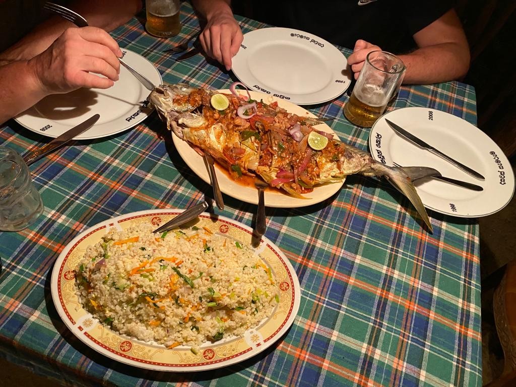 Abends haben wir ebenfalls auf Empfehlung unserer Gastgeberin bei Manju im „Cinnamon Garden“ zu Abend gegessen – und zwar gleich zwei Mal hintereinander, da es uns so gut geschmeckt hat und Manju hervorragendes Seafood und Fisch zubereitet hat.