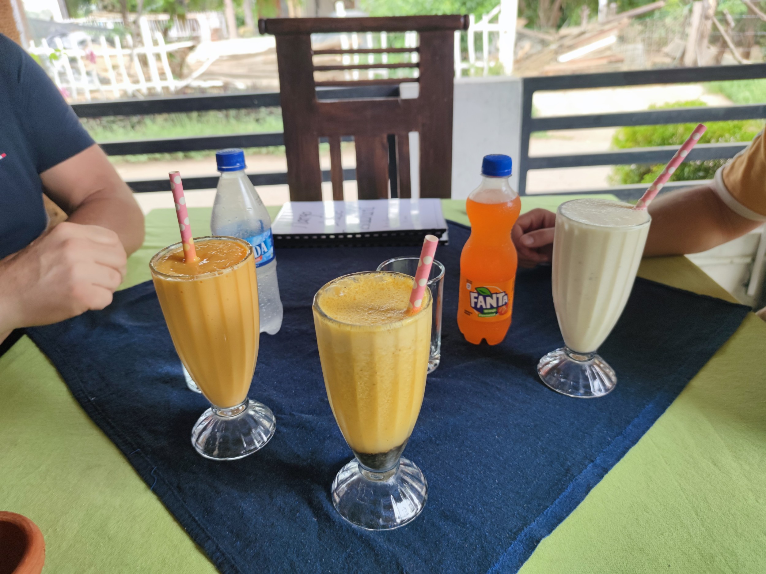 Frische Spur einer Schildkröte 🐢Mango Lassie, Maracuja Saft und Bananen Lassie v.l.n.r. für insgesamt ca. 5€