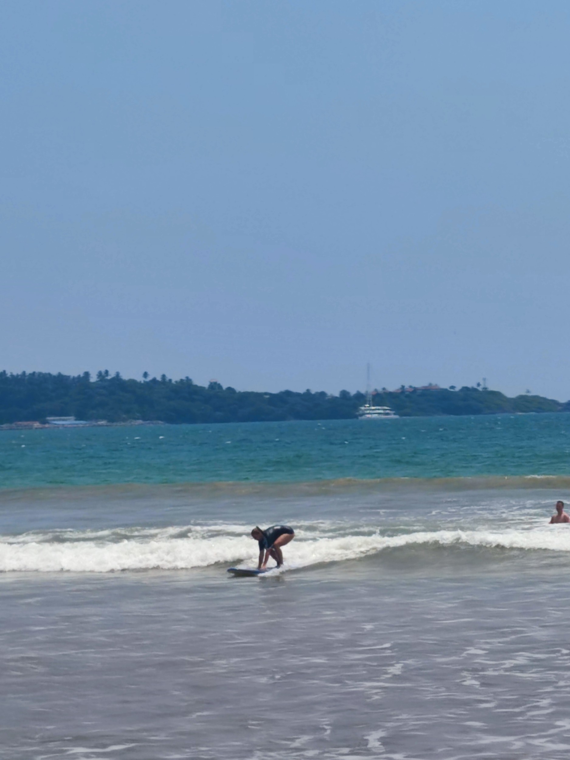 Gestern waren wir am „Hiriketiya beach“ und waren echt überrascht wie viele Touristen vor Ort waren. So viele andere Touristen haben wir den ganzen Urlaub über nicht auf einmal gesehen. Der Strand war perfekt zum Surfen geeignet und das hat sich hier wohl rumgesprochen. Die Wellen in dieser Bucht waren etwas kleiner und viel ruhiger als draußen an dem offenen Meer. Natürlich hat sich Nils sofort mit Surfbrett in die Wellen begeben 🙂 P.s. die Knie sind aufgescheuert, die Handgelenke tun weh und der Sonnenbrand fehlt natürlich auch nicht 😀 Es hat sich aber gelohnt. Im Anhang findet Ihr die Fotos & Videos.